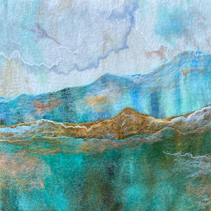 'A Time and a Place' - New Zealand Merino Wool and silk fibres, rayon thread. Treated with Microseal for UV and stain protection.